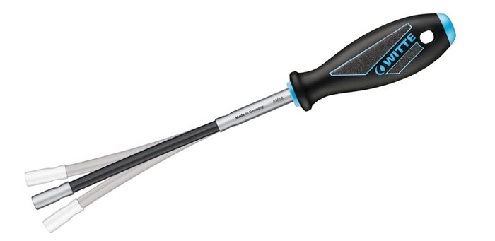 'MAXX-PLUS' NUTDRIVER with flexible shank + patented, non-slip microfibre coating.