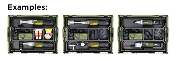 PROXXON Basic Storage and Charging Set for Cordless Tool Range. Case has inserts to fit two PROXXON Cordless Tools.