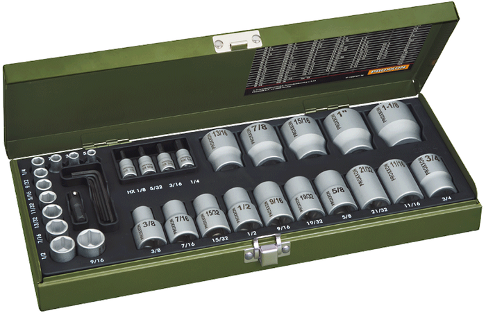 - 15 x 1/2 Inch Sockets (Sizes 3/8" to 1-1/8")