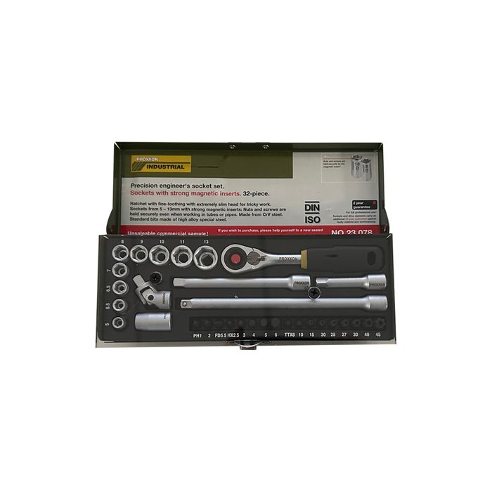 PROXXON SHOP DISPLAY Version of Art. 23078 - 32 Piece Socket Set (see RELATED PRODUCTS). This demonstrator set acts as a great visual incentive by showing potential customers all the items that come in the regular set.