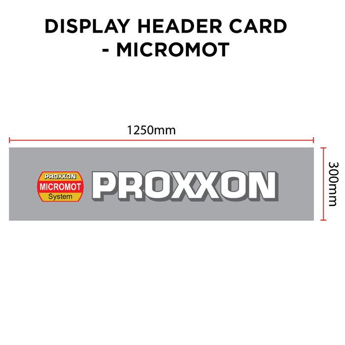 PROXXON Cardboard Display Header Card, this eye-catching header highlights and advertises the MICROMOT Power Tool range. This header card is a great way to guide potential customers towards any PROXXON Micromot stock in your shop.