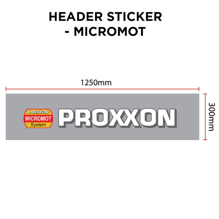 PROXXON Display Header Sticker, this eye-catching header highlights and advertises the Micromot Power Tool range. This header label is a great way to guide potential customers towards any PROXXON Micromot stock in your shop.