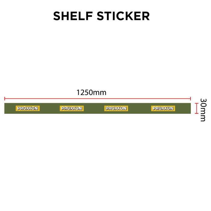 PROXXON Branded Shelving Sticker. This eye-catching sticker is designed for customer facing shelving units to further reinforce brand recognition for any potential customers. Sticker can be easily cut down to suit shelves of various lengths.
