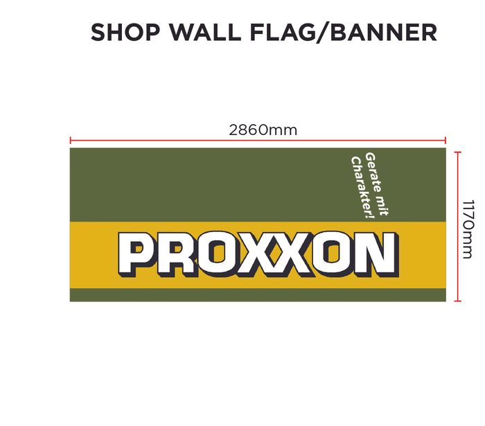 PROXXON Branded Wall Banner/Flag. This large banner not only acts as an eye catching advertisement of the PROXXON brand but can also act as a visual aid for potential buyers to guide them towards your stock of the brand.