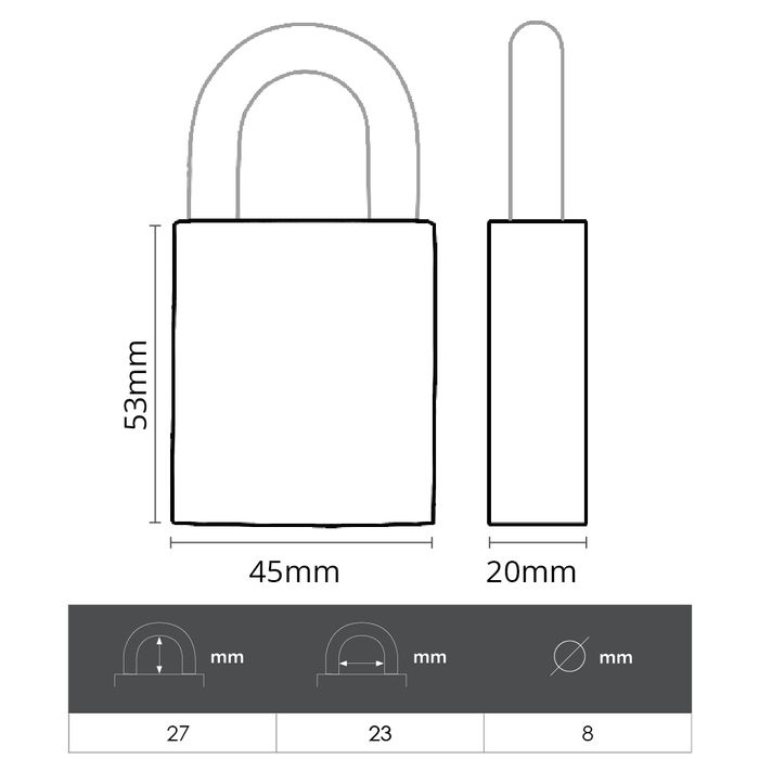 '500 Series' 45mm (KD) PADLOCK - BORON SHKL.