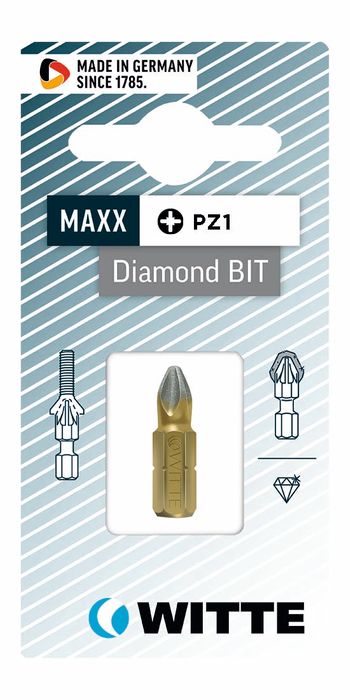 With the microparticle diamond coating, WITTE DIAMOND bits provide unbeatable grip and, thanks to the high-grade gold coating, optimum corrosion protection.
