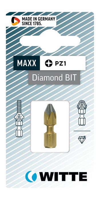 With the microparticle diamond coating, WITTE DIAMOND bits provide unbeatable grip and, thanks to the high-grade gold coating, optimum corrosion protection.