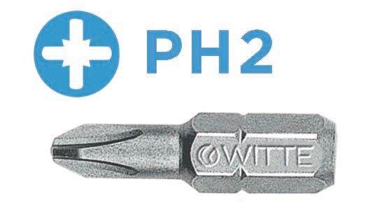 WITTE 1/4" Insert Bit, PHILLIPS - Truncated/Reduced Tip
