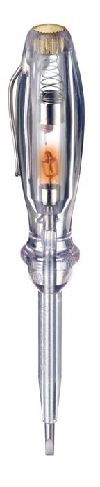 For maximum safety the voltage tester has been manufactured in accordance with the current DIN standard and tested to VDE/GS (German label for tested safety) for work on live components from 150-250 volts.