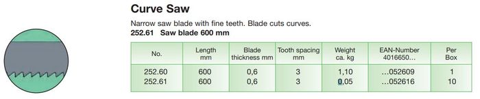 - Narrow saw blade with fine teeth
