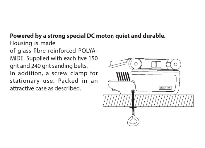 - Left-aligned sanding belt allows for sanding right into corners