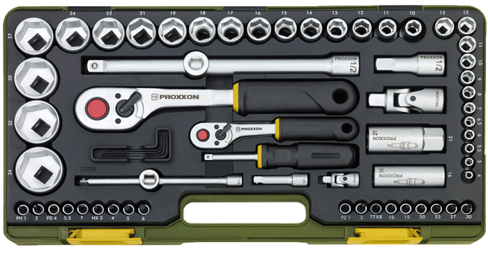- 29 x Standard sockets ranging from 4 to 34 mm