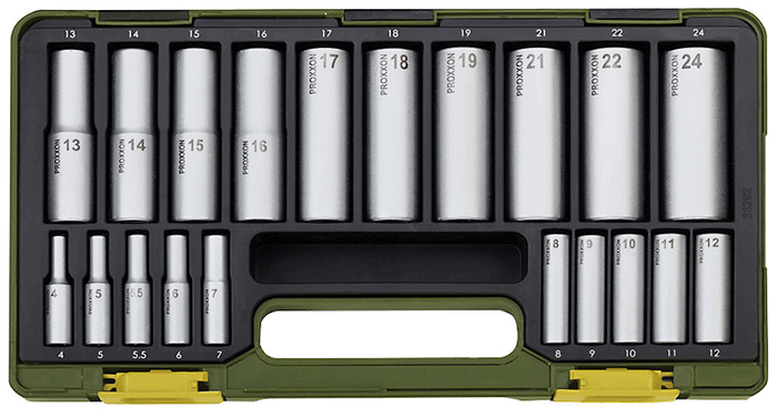 - 10 x 1/2" Deep sockets (13 - 24 mm)
