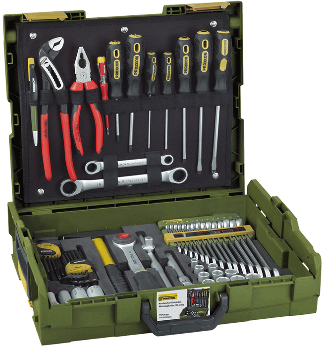 Tools come packaged in PROXXON L102 L-BOXX. Organisation and safety in storage and transport for professional craftsmen.