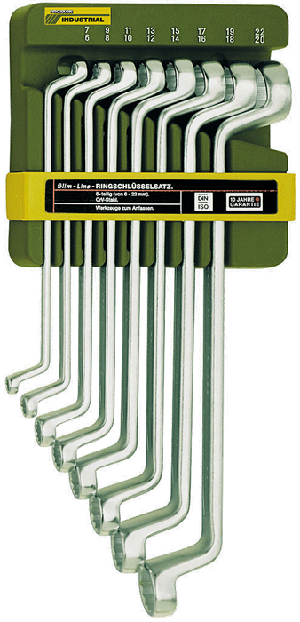 8-piece SlimLine double ring spanner set, including holder.