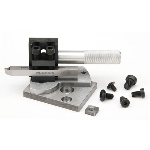 Height adjustable tool holder (boring tool tip adjustable from 30 through 45mm above cross slide) for use with FD-150/E, PD-250/E, PD-400 and older PROXXON lathes.